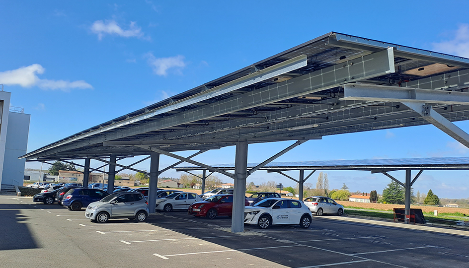 La dernière opération prévoyait le financement de 6 ombrières photovoltaïques de 100 kWc. Elles sont désormais en service !